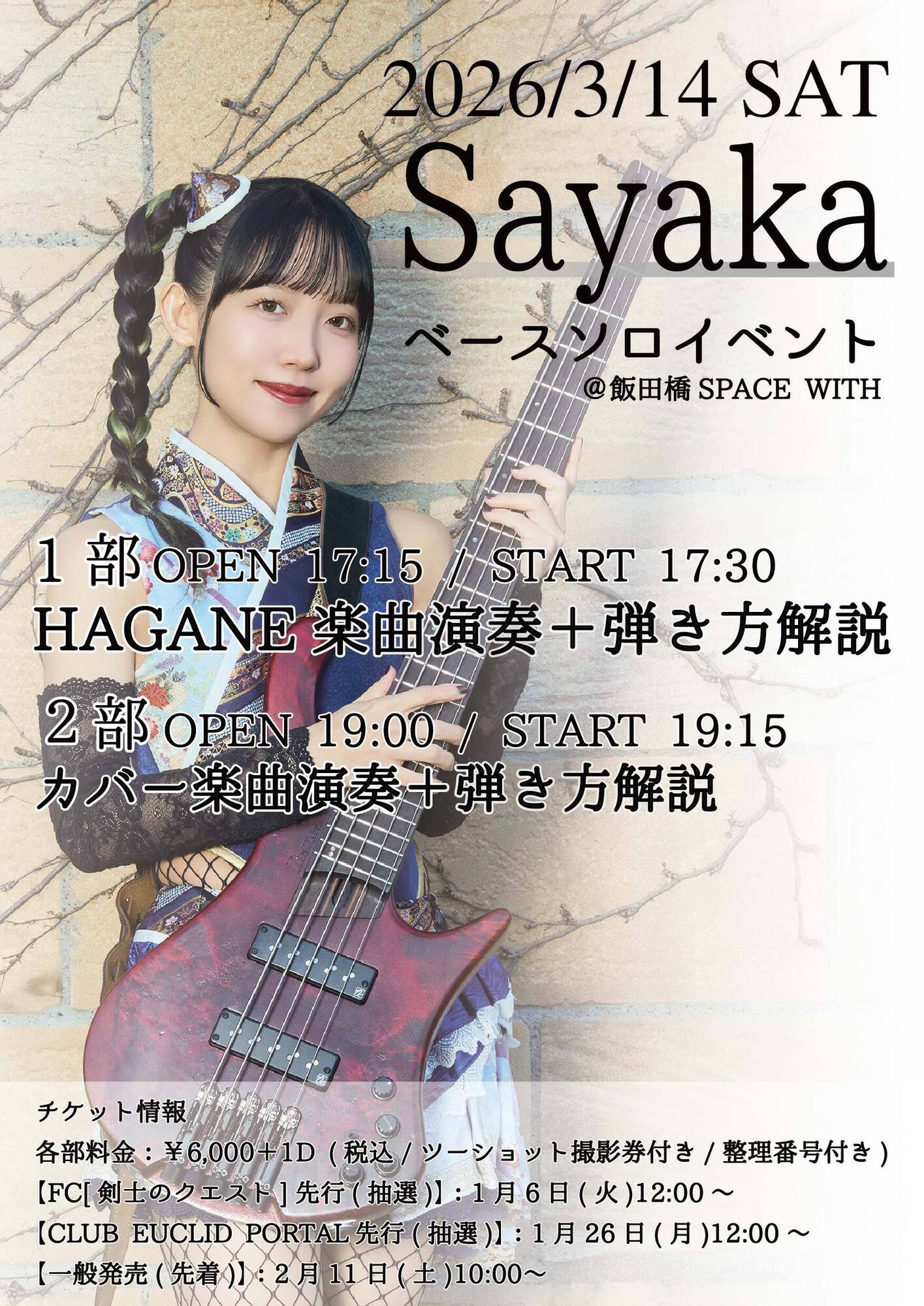 <イベント・Sayaka> 3/14 飯田橋 Sayakaベースソロイベント