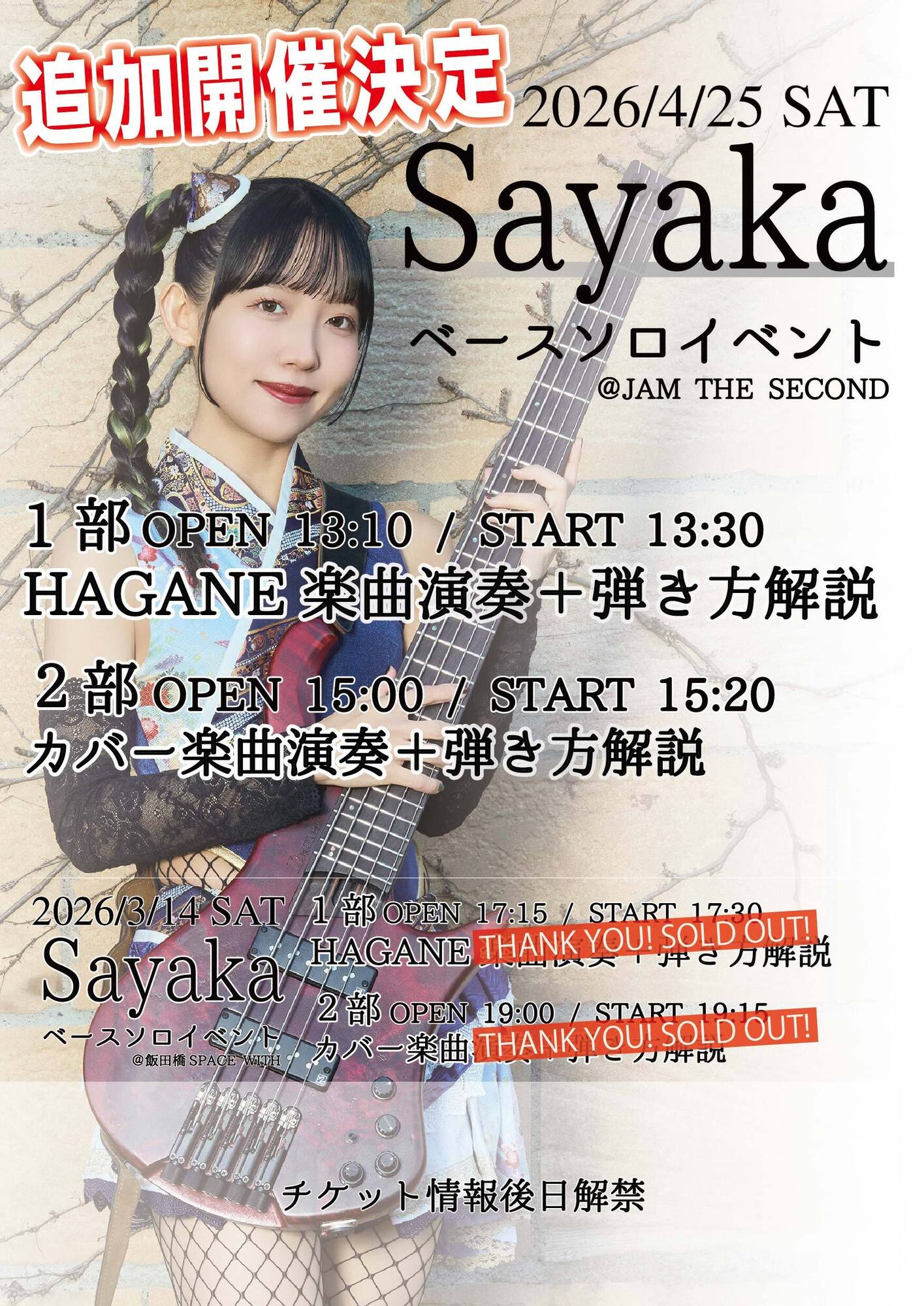 <イベント・Sayaka> 4/25 横浜 Sayakaベースソロイベント