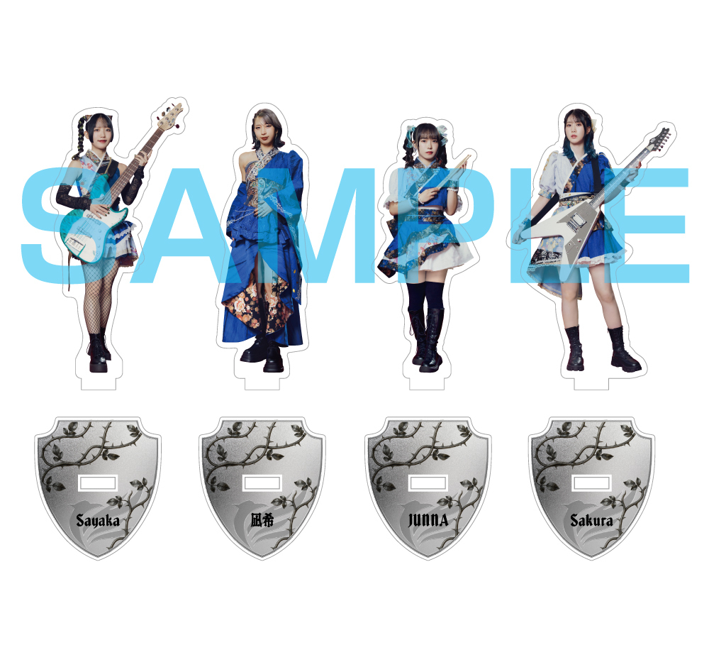 凪希 / 約H10cm×W3.3cm、Sakura / 約H10cm×W5.9cm、Sayaka / 約H10cm×W4.8cm、JUNNA / 約H9.5cm×W3.8cm、台座 / 約H 5cm×W4.4cm