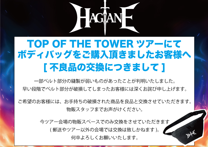 <グッズ>ボディバッグの不良品に関する交換のご案内