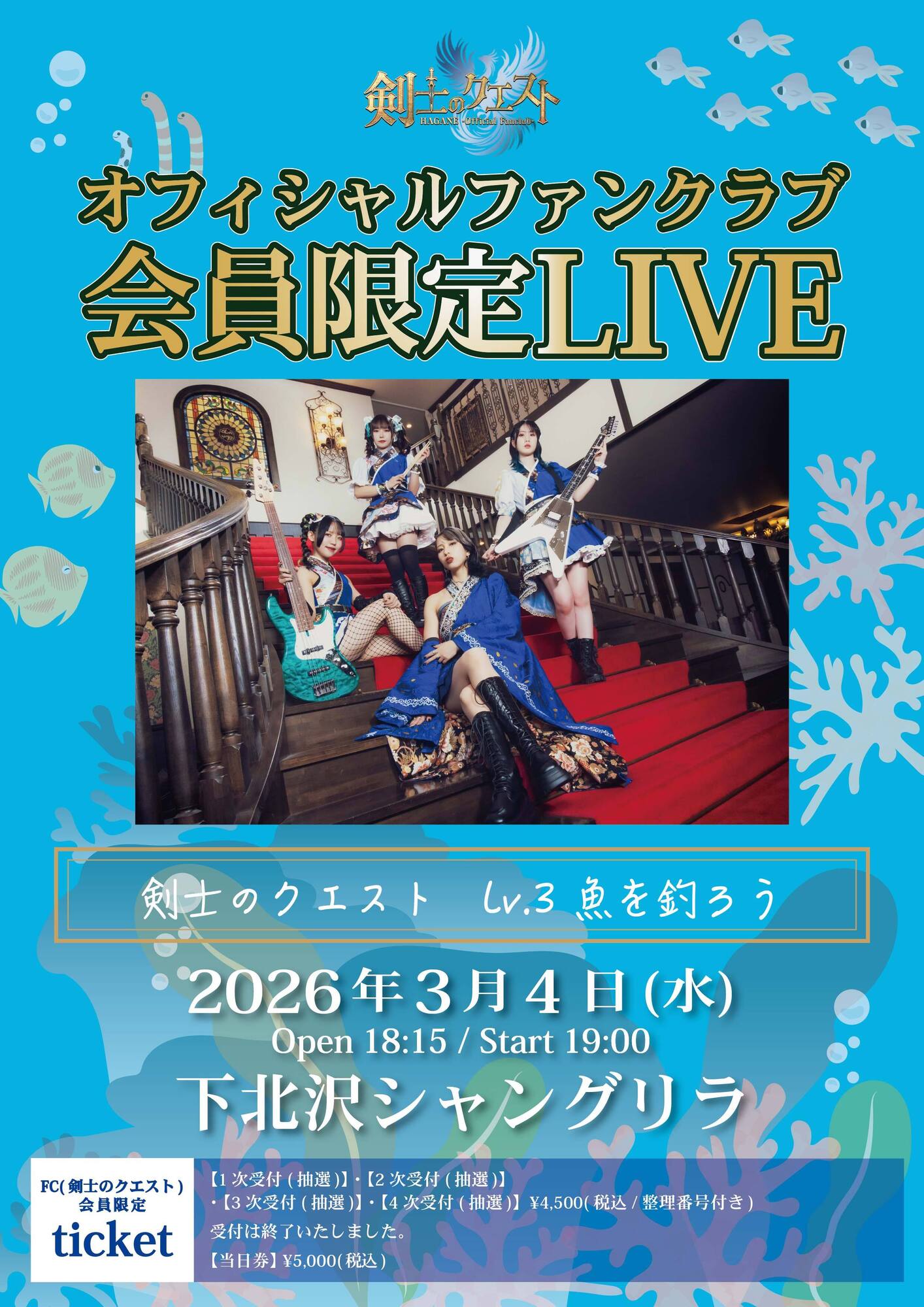<ワンマン> 3/4 下北沢 HAGANEオフィシャルファンクラブ会員限定LIVE 「剣士のクエスト Lv.3 魚を釣ろう」※2/24更新